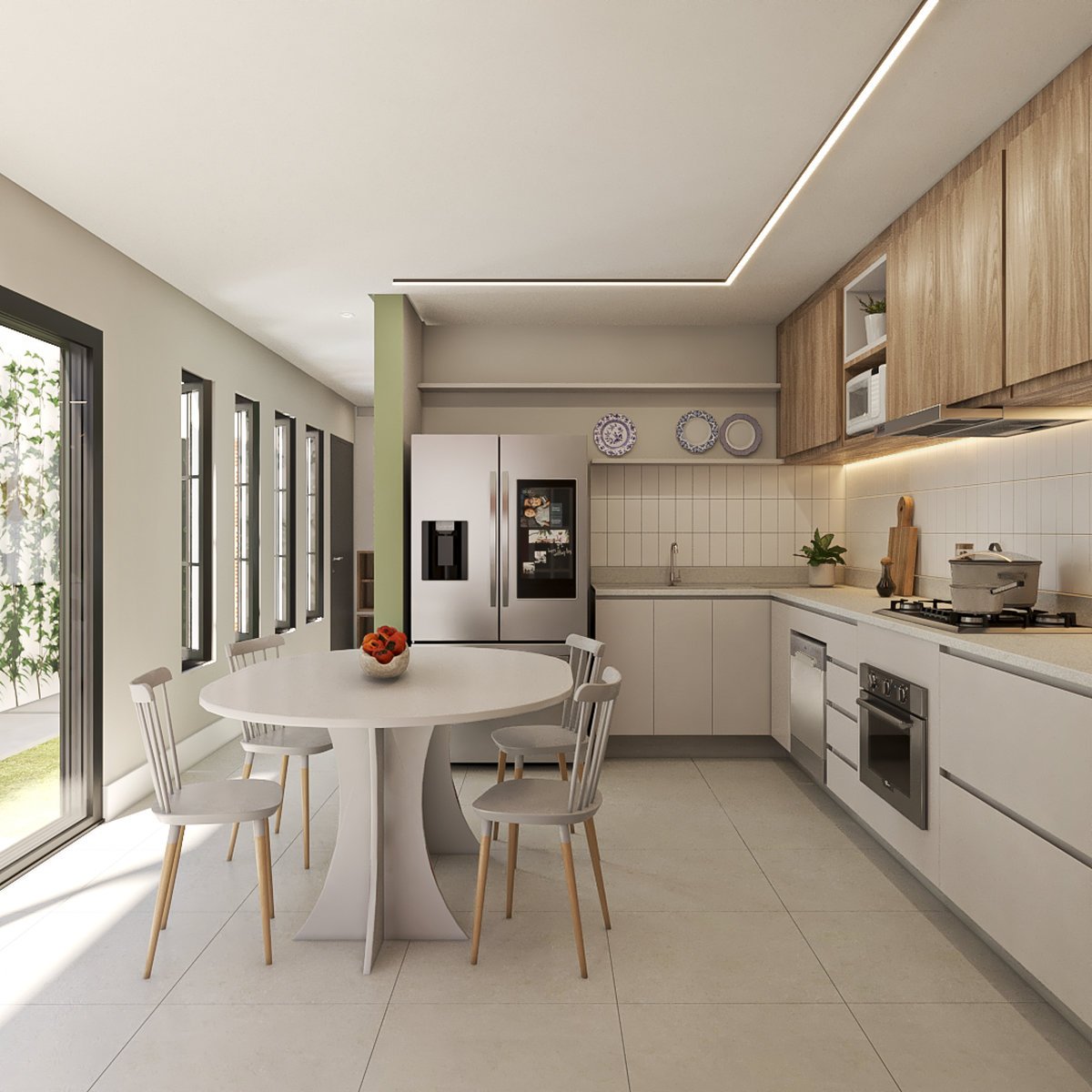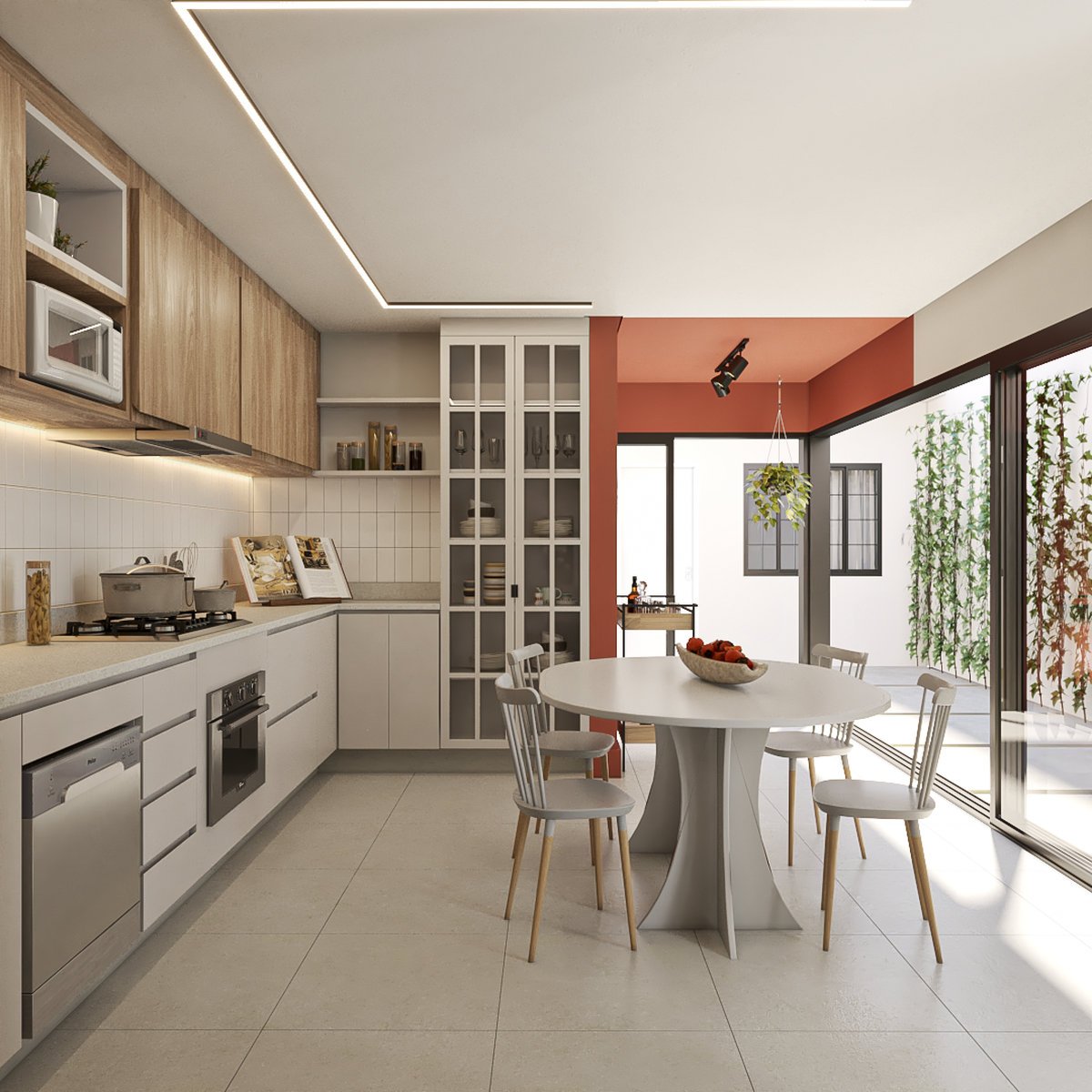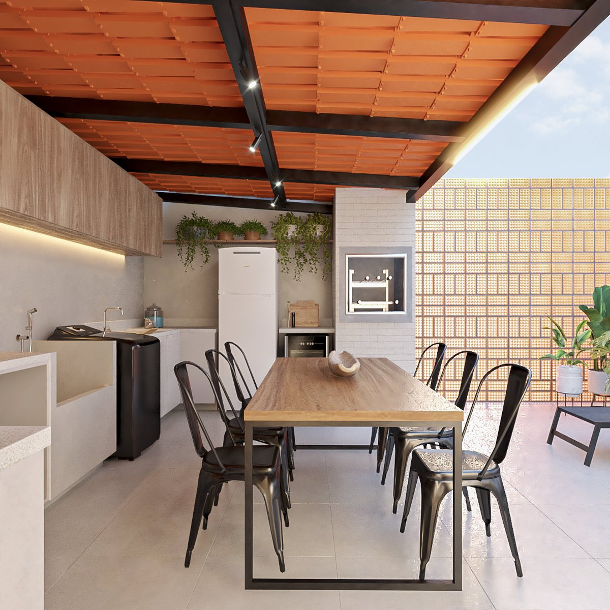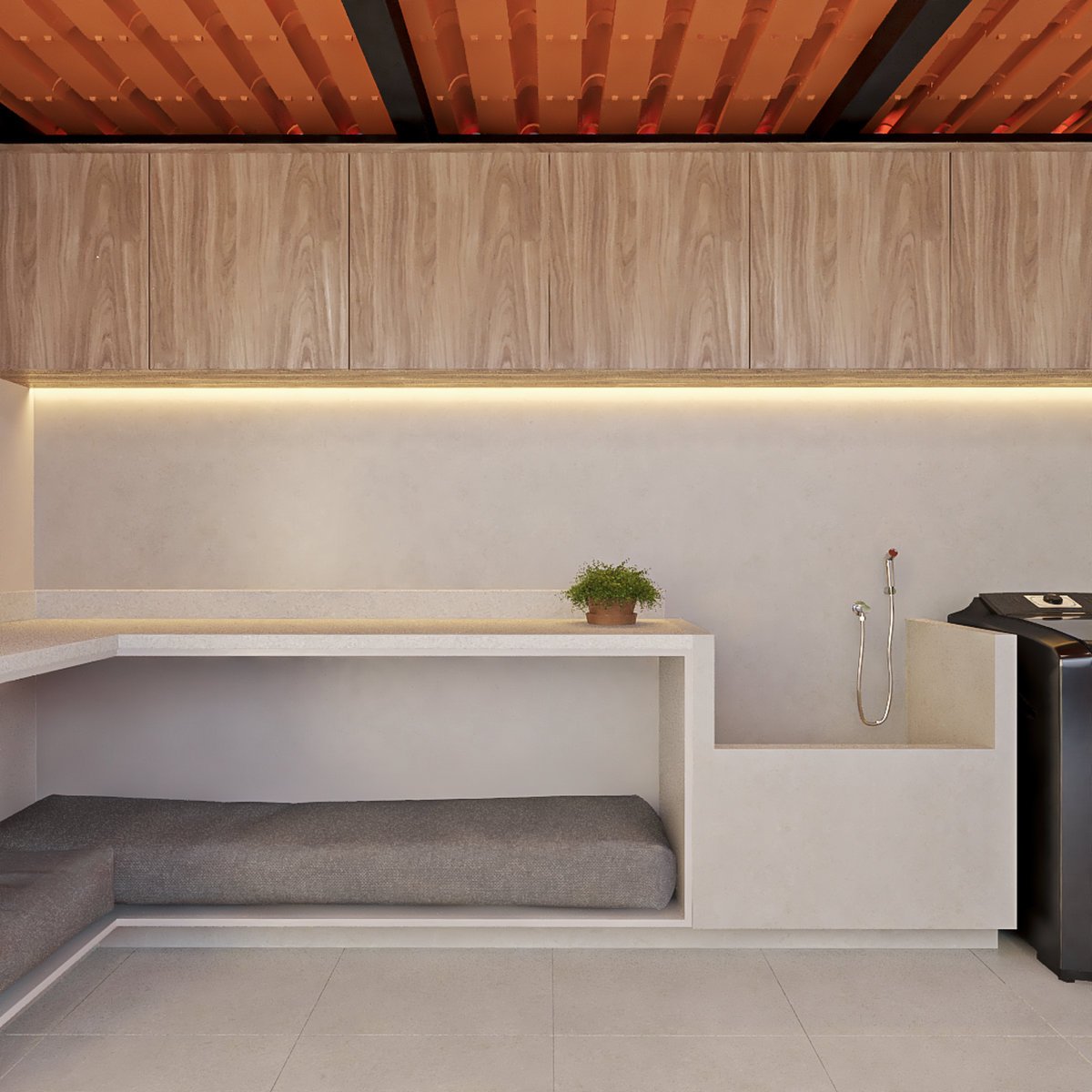Atendendo a uma família apaixonada por animais e plantas, a Residência Conti também conta com um espaço pet exclusivo, equipado com caminhas e um lavatório para banho, proporcionando cuidado e bem-estar aos companheiros de quatro patas.
